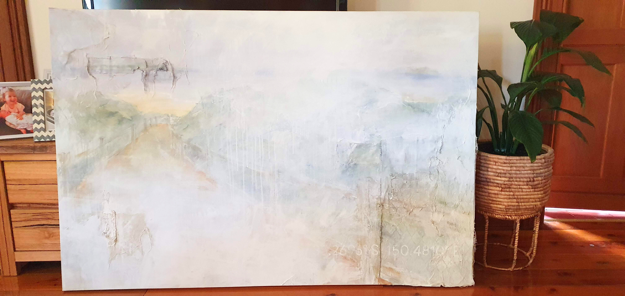 Lake Conjola, 2021. Mixed media on canvas. 90 x 150cm. (Private Collection)