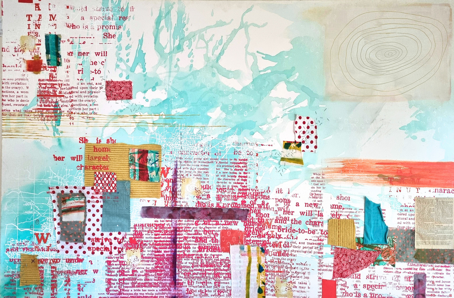 MJ is constantly drawn to an intricate interplay of colour, shape, and surface as an exploration of the human landscape. Her work is often an abstracted reflection of personal and universal ponderings, marked by contemplation, curiosity and sensemaking. She views the creative process as a dialogue between intuition and intention, the organic and the structured.